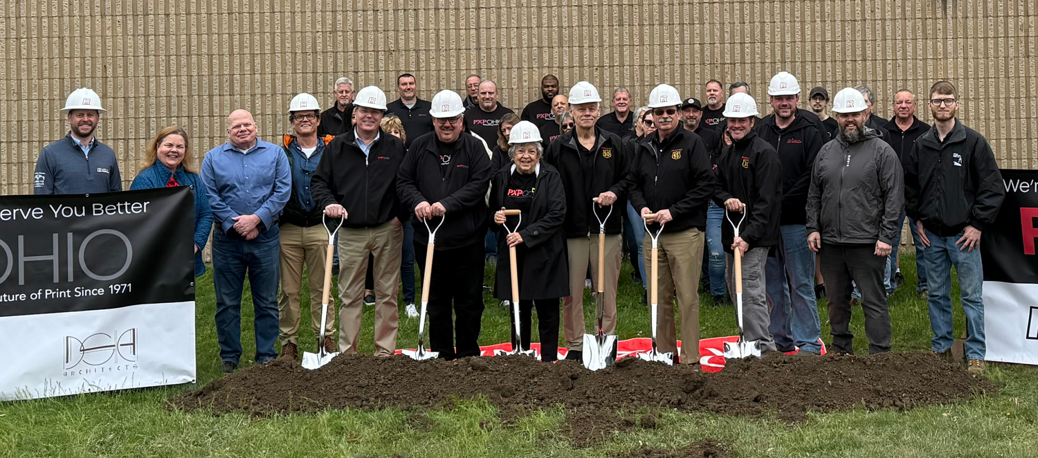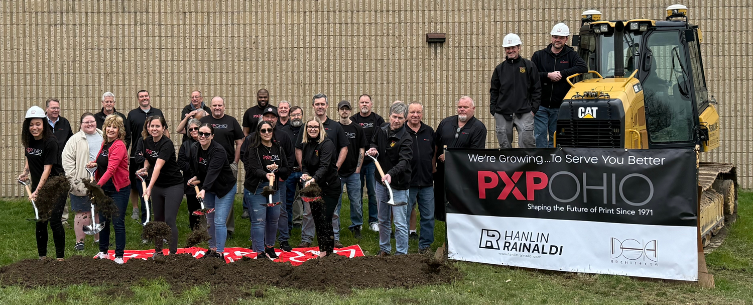 PXPOHIO moved to 6800 Tussing Road in the summer of 1993. By 2023 we had used up just about every square inch of space and it was time to either move or expand. As we had a pretty good-size piece of property on the east side of our building we started looking into an expansion project. We had our first meeting with Hanlin-Rainaldi on May 25, 2023. The research, development and planning phase, as well as going up against a dreaded and tyrannical empire known as the City of Columbus Zoning Commission, took an unbelievable 25 months and 11 days. One would have thought we were attempting to construct the great pyramids of Egypt. Construction began on July 7, 2025 and as of mid-October we have a floor, 4 walls and the roof is being constructed presently. This major undertaking is due to be completed by year’s end. This construction project has been made possible by the great people of Hanlin-Rainaldi and their many sub-contractors, Mark Antonetz of Sands Decker Engineers & Surveyors and Chris Vallette of Donald Schofield + Associates, Inc. We are truly grateful for all of their tireless efforts throughout this process. The staff of PXPOHIO also wishes to thank all of our great clients and vendors for without them this venture would have been completely unnecessary. It has been our true honor to serve your printing needs for over 54 years!